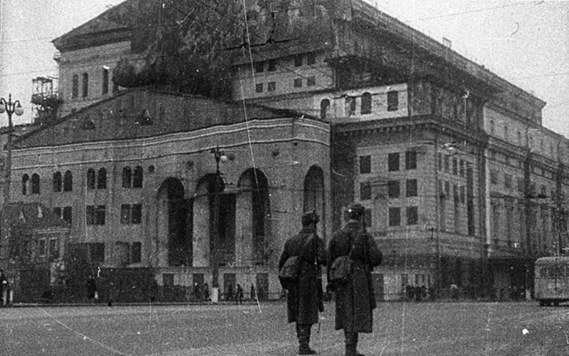| Teatro Bolshói en 1941-1942 // Foto: © Departamento principal de archivos de Moscú El 28 de octubre de 1941 hacía buen tiempo en Moscú. Solo había algunas nubes, pero el cielo ocultaba un peligro. A las 16 se produjo una gran explosión: el edificio del Bolshói tambaleó como una cuna colgante. Desde detrás de una nube, el bombardero nazi Junkers Ju 88 lanzó una bomba de 500 kilos que explotó justo en la entrada central del teatro. En la calle yacían transeúntes muertos y heridos. La fachada del teatro fue dañada por la explosión. En el contexto de la ofensiva nazi en curso, se decidió evacuar a la compañía principal del teatro a la ciudad de Kúibyshev, la actual Samara. La otra parte de la compañía teatral permaneció en Moscú. Cuando en septiembre de 1943 la compañía principal del Teatro Bolshói regresó a Moscú, el renovado edificio estaba listo para la apertura de la temporada gracias a los heroicos esfuerzos de los restauradores. A veces se desmayaban de hambre, pero continuaban trabajando durante 11 o 12 horas. Al final, prácticamente no quedaron huellas del bombardeo. El Bolshói reabrió sus puertas el 26 de septiembre con la presentación de la ópera inmortal de Mijaíl Glinka Iván Susanin. |