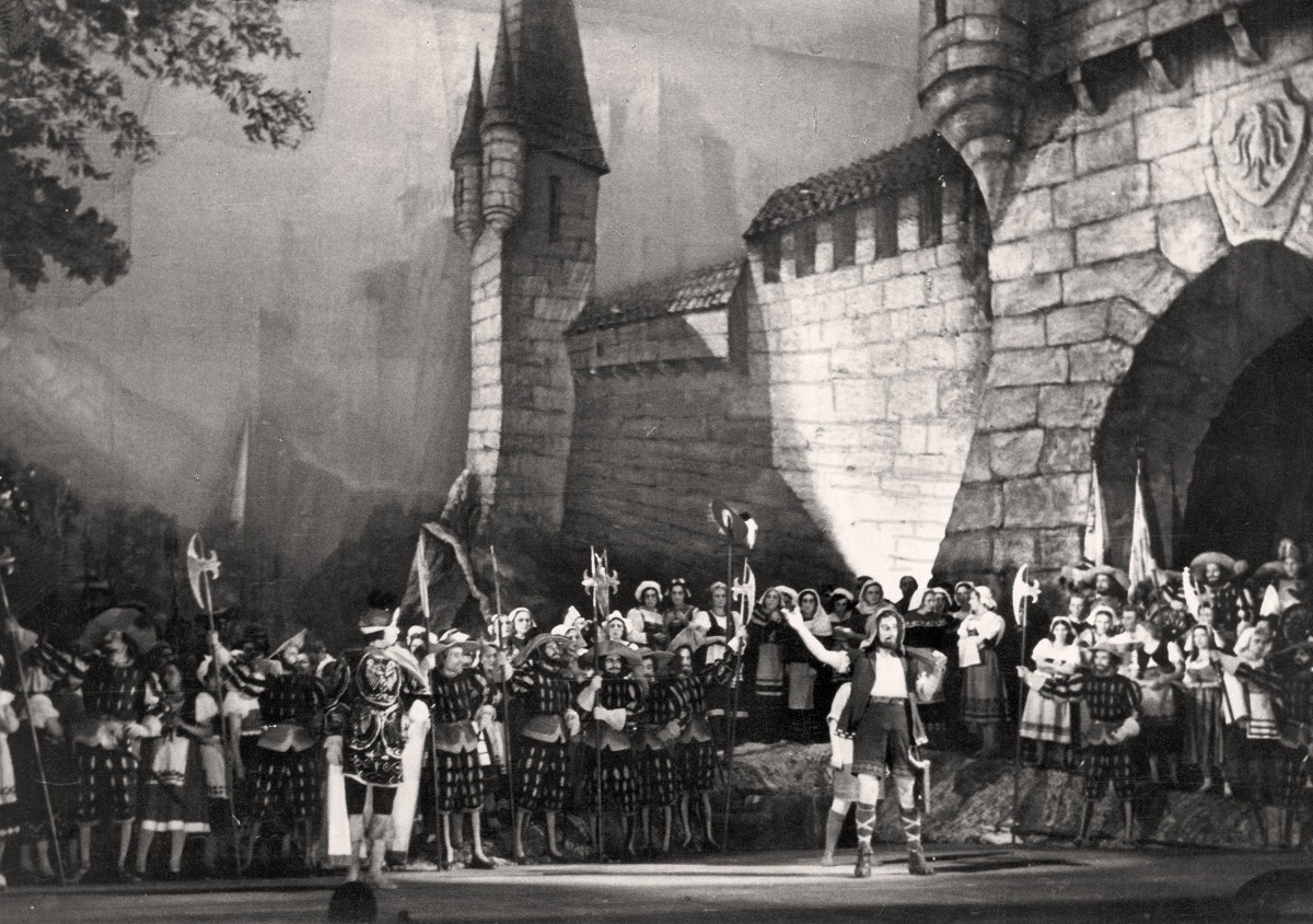 | Escena de la ópera de Gioachino Rossini 'Guillermo Tell' en Kúibyshev, 1942 (izquierda) // Foto: © Museo del Teatro Estatal Académico Bolshói En aquel entonces, Kúibyshev fue nombrada la capital de reserva de la URSS. Ninguna circunstancia debía afectar la calidad de las representaciones. Los artistas consideraron un honor garantizar que cada actuación se viera metropolitana. Al final, esto también tenía un significado político: no solo el público, sino también el cuerpo diplomático, que entonces estaba en Kúibyshev, necesitaban mostrar que el mejor teatro musical del país seguía funcionando como antes. Durante dos años (1941-1943), el Teatro Bolshói realizó 14 representaciones en el escenario del teatro de Kúibyshev: nueve óperas y cinco ballets. Y lanzó dos estrenos brillantes: la ópera de Gioachino Rossini Guillermo Tell y el ballet de Asaf Messerer Velas Escarlatas del compositor Vladímir Yurovsky. |